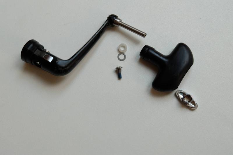 Ручка выполнена из алюминиевого сплава и окрашена(лакокрасочное покрытие довольно быстро слазит) в чёрный цвет, складная, накручивается на ведущее колесо. Высокое качество исполнения. Кноб классический, Т-образный, выполнен из плотной резины, отличного качества. Вращается на одной пластиковой втулке, которую рекомендуем сразу заменить на подшипник размером 4*7*2,5.