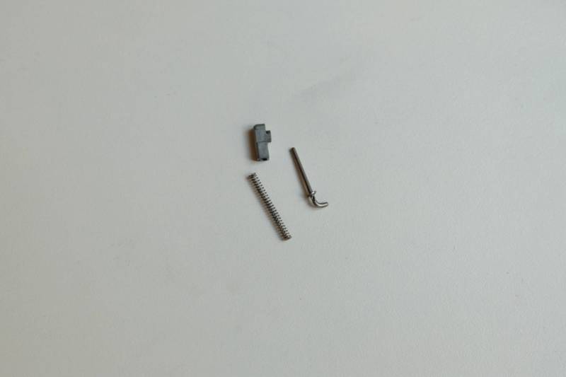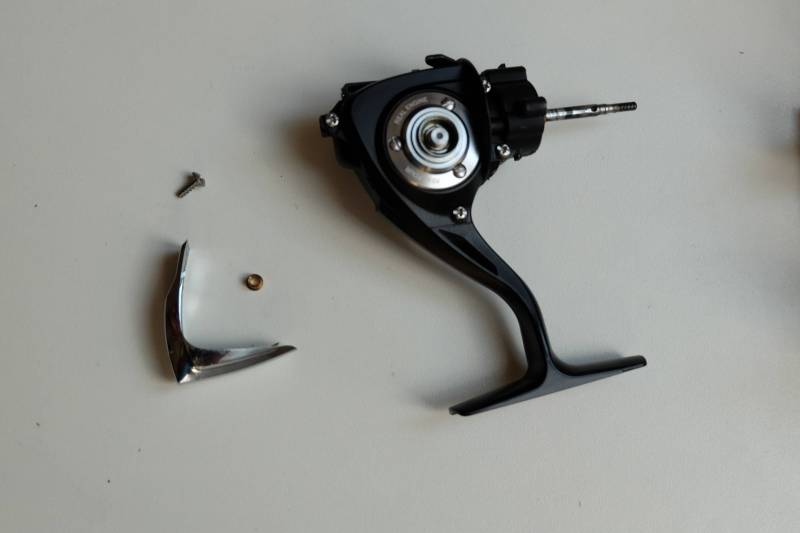 Рычаг изготовлен из алюминиевого сплава и это радует. Сброс дужки обеспечивает отличная пружина с толкателем. С другой стороны видим рычаг и пружинку. Всё стандарно и надёжно! Работает безо всяких проблем.