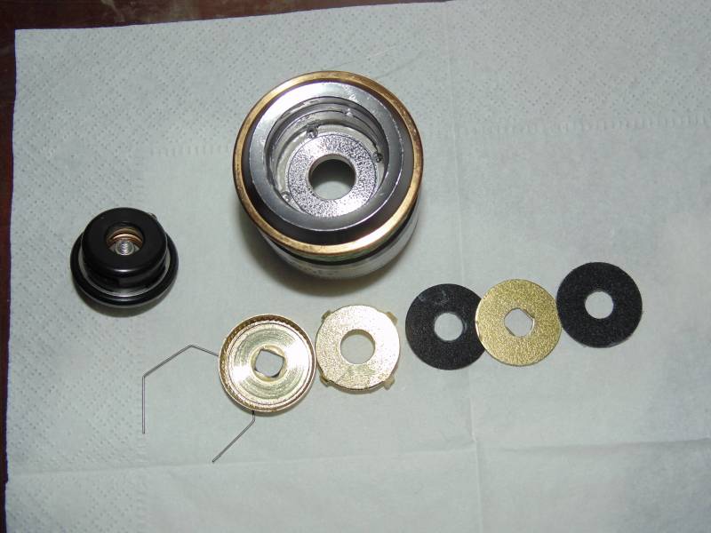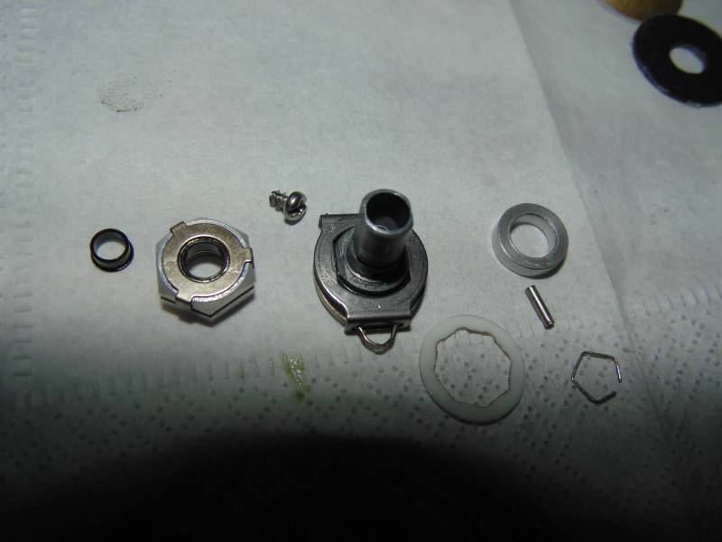 Подшпульный узел состоит из металлической основы, которая фиксируется на штоке с помощью металлической оси, трещетки, шайбы, металлической втулки и фторопластовой шайбы (от неё зависит намотка, её нет на фото, забыли положить)))) ). Металлическую втулку лучше заменить на подшипник. Узел стандартен, качество отличное.