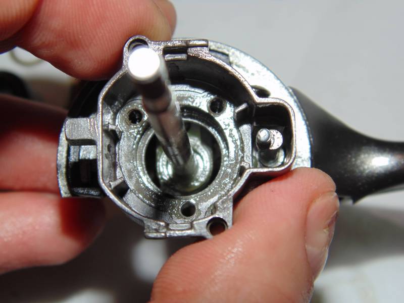 Шток из алюминиевого к нему прикручена S-ка(кулиса), которая ездит по паразитке. Направляющая – нержавейка. Отлично сидит. Шток довольно нежный и со временем сильно протирается, это их проблема. Препятствует самосбросу резиновый подтормаживатель. Частенько эти подторможиватели трескаются, расслаиваются. В принципе удивляться нечему. Резина есть резина и она требует ухода. Обгонка служит долго, если нормально обращаться.