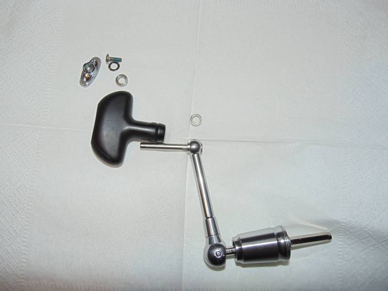 Гайка фрикциона стандратная. Ручка не очень удачная, такая же как на Кальдии. В месте соединения начинаются проблемки. Вставлется в ведущее колесо и с обратной стороны фиксируется заглушкой.