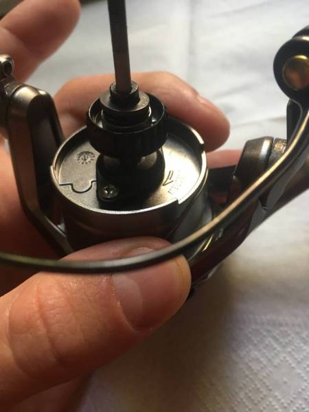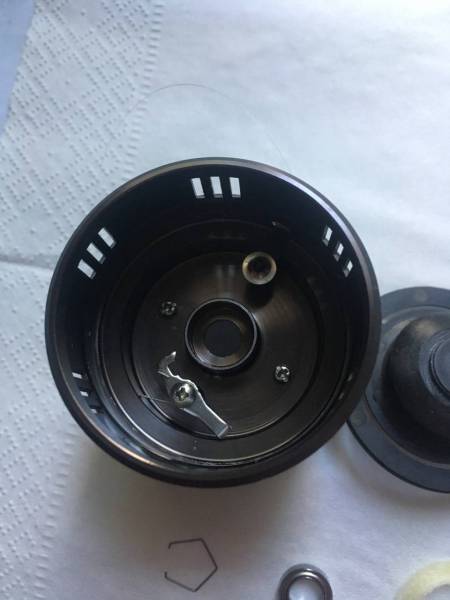 Шпуля тоже понравилась,убрали лишний металл по максимуму.Жаль конечно,что нету бортика с нитрид титаном.Пакет фрикциона состоит из двух дисков.Под ними видим подшипник и это плюс.Гайка фрикциона большая и удобная.