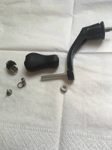 Ручка порадовала.Она цельная,удобная,лёгкая и эргономичная,конечно же вкручивается в ведущее колесо.Выполнена из алюминиевого сплава.Кноб резиновый нового образца,по качеству ничем не отличается от прежнего.Вращается на двух подшипниках.