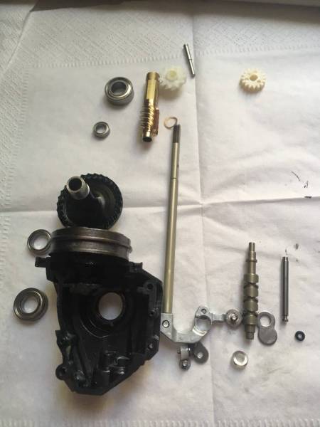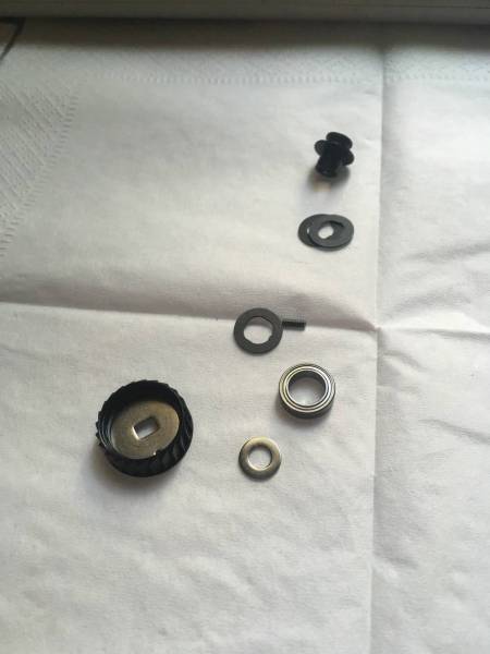 Узел ролика состоит из оси ,дистанционной шайбы ролика, в котором запрессован подшипник(хорошее решение,всё сидит мёртво) ,ещё одной дистанционной шайбы и одной шайбы, которая упирается в рог.Получается что подшипник не вынимешь,тобишь если полетит, то придётся покупать и ролик,а стоит это немало.