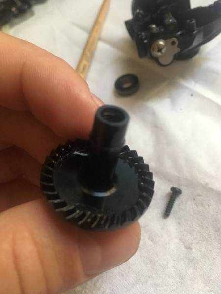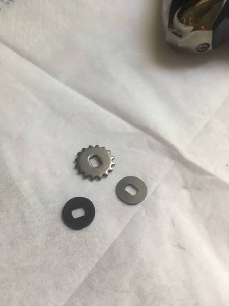 Ведущее колесо и ведомая шестеренка(что примечательно) сделаны из алюминиевого сплава и имеют защитное покрытие.Такая парочка очень хорошо и мягко работает.Жаль конечно что паразитка из пластика,но что есть.