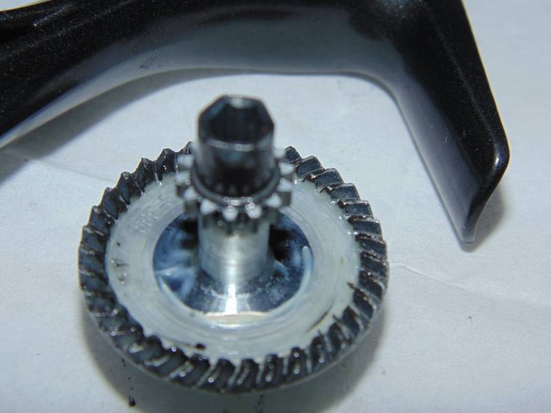 Колесо выполнено из не очень качественного сплава алюминия .Как видим справа втулка( в новых моделях уже подшипник 7*11*3), слева подшипник размером 7*14*5. Главный такого же размера - 7*14*5. S-ка и паразитка выполнены из такого же сплава, что и главное колесо.