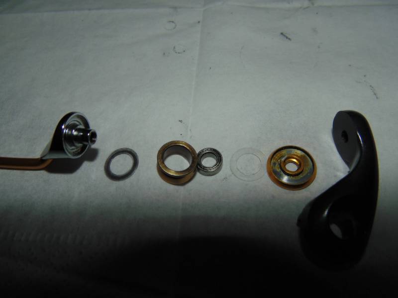 Дужка толстая, с покрытием из нитрид титана. Жаль, что она не цельная. Узел ролика очень неплохой и состоит из двух фторопластовых шайб, металлической вставки, подшипника размером 4*7*2,5 ну и самого ролика, который покрыт нитрид титаном.