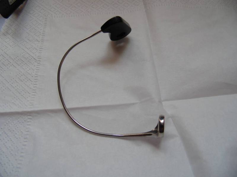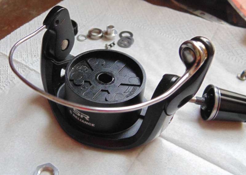 Дужка классическая,цельная.Крепится к ротору не самым лучшим образом, тобишь с внутренней стороны.Кто пользуется наверное заметили, как со временем дужка начинает опускаться всё ниже и ниже.