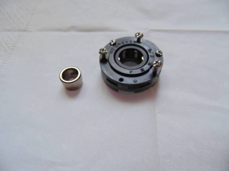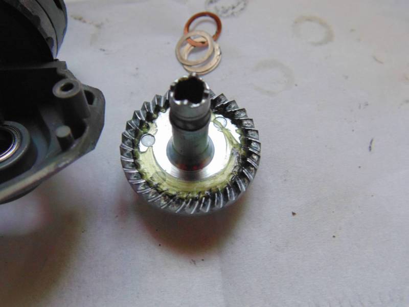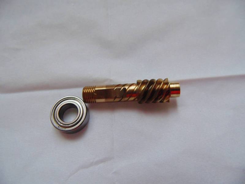 Ведомая из бронзы. Вращается на большом подшипнике 7*14*5.Внизу упирается в корпус ,но это не мешает ей хорошо работать.