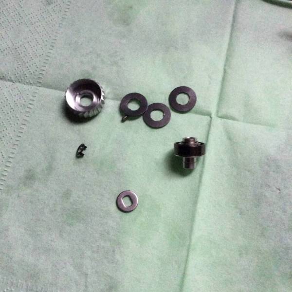 Откручиваем три винта и достаём маленькое колесо.Выполнено оно из алюминиевого сплава +анодирование.Оно точно такое же, как на 05 и 06 твинах. Это вполне нормально и закономерно.К примеру на 02 Пыжике стоит такое же колесо, как и на 98 Стелле.Японцы гении маркетинга и тут не поспоришь.