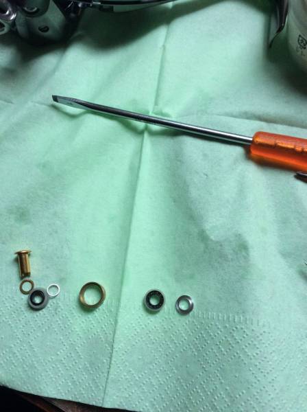 Подшпульный узел стандартный.Состоит из металлического колесика(,шайбочки ,подшипника, метал основы(под ней садится подшипник )пластиковой втулочки ,шестигранного винтика, которым фиксируется основа на штоке и конечно же регулировочных шайб от которых зависит профиль намотки.