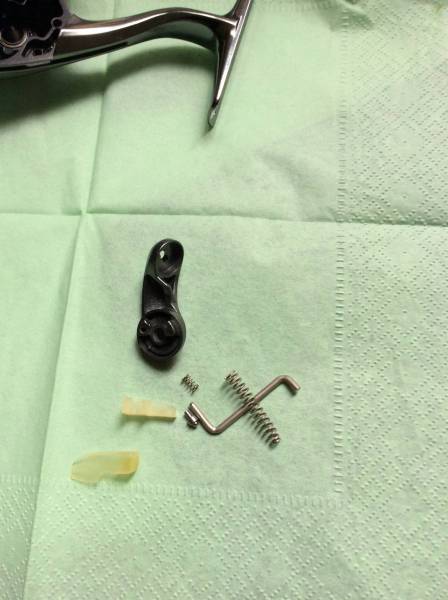Механизм сброса состоит из рычага,пружины с толкателем,подпружиненного фиксатора,пластиковых вкладышей.Всё работает как надо.