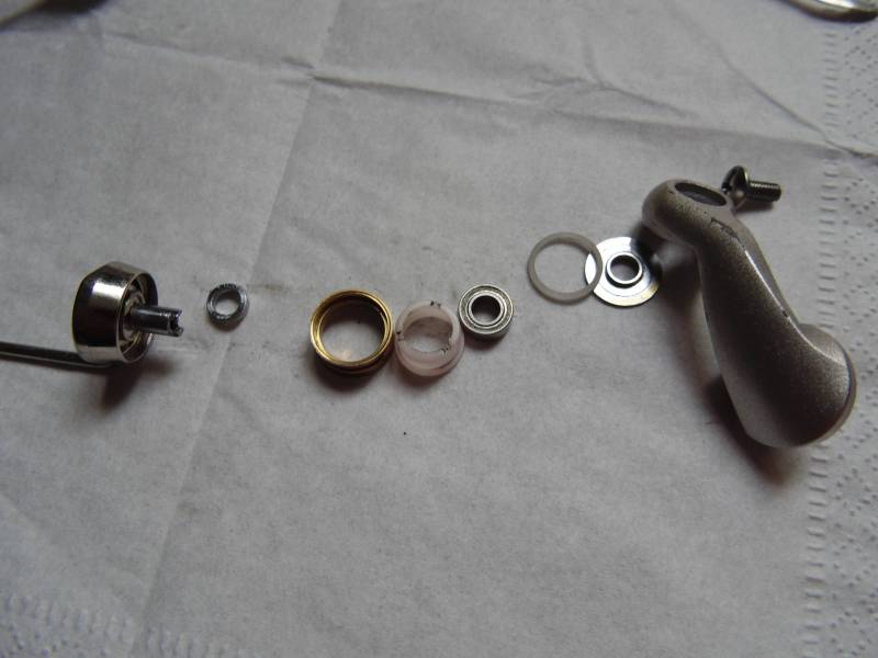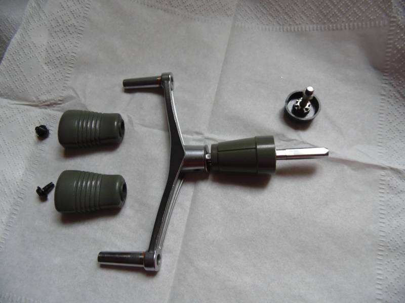 Ручка двойная,обычная из алюминиевого сплава.Кнобы вращаются на оси,конечно лучше это все переделать под подшипники.