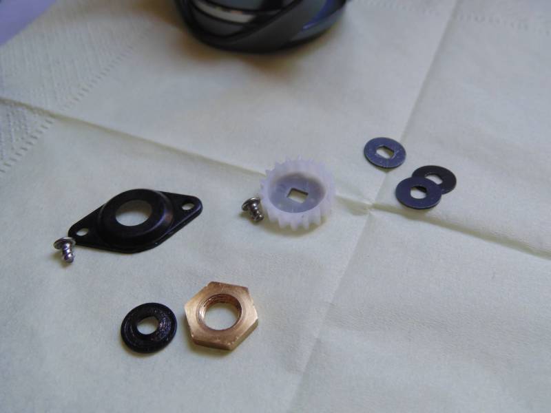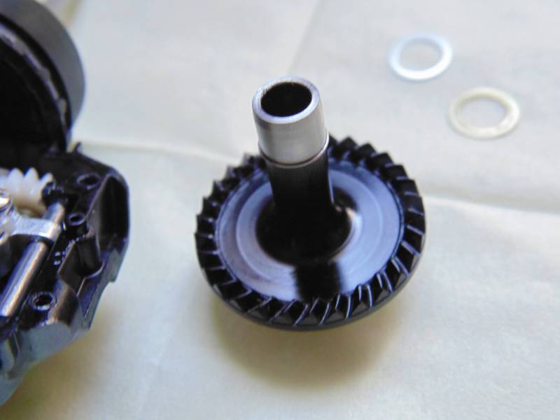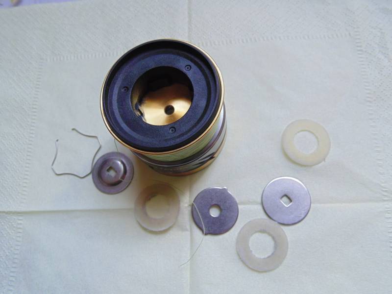 Подшпульный узел старого образца- пластиковая трещетка и шайбы.