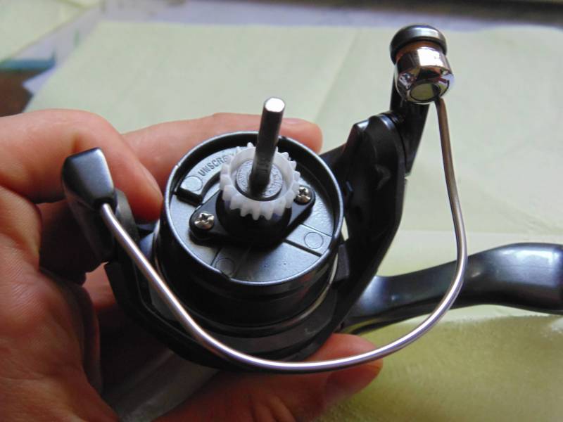 Механизм перенесен в правую сторону,так сказать для лучшего баланса снасти в целом.