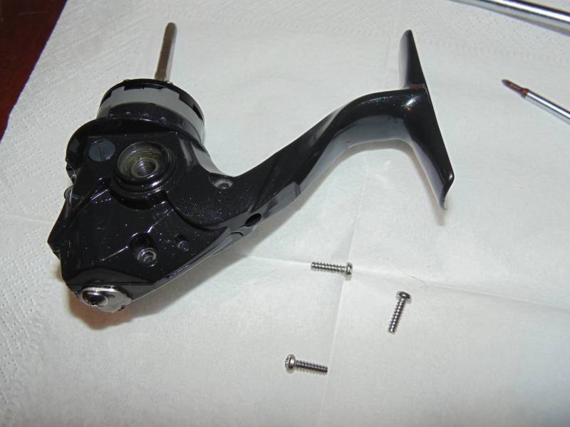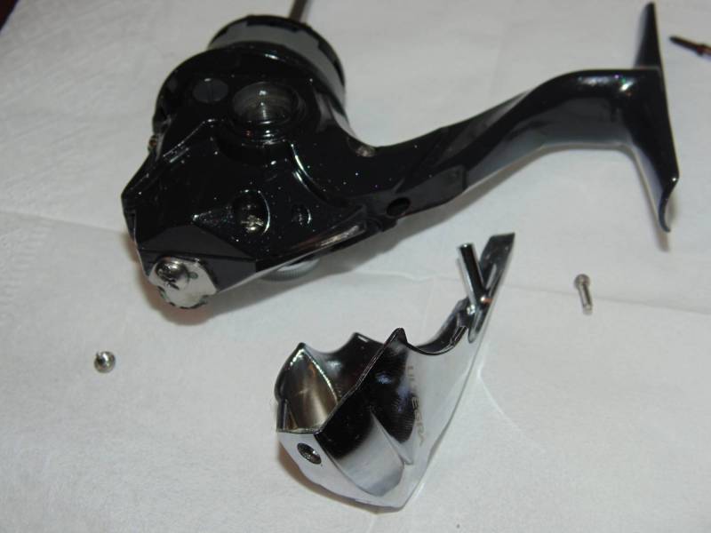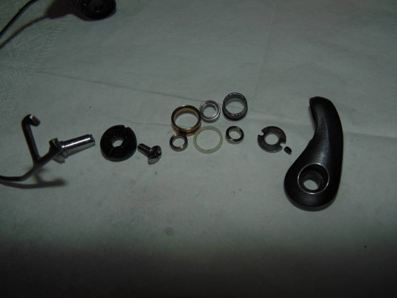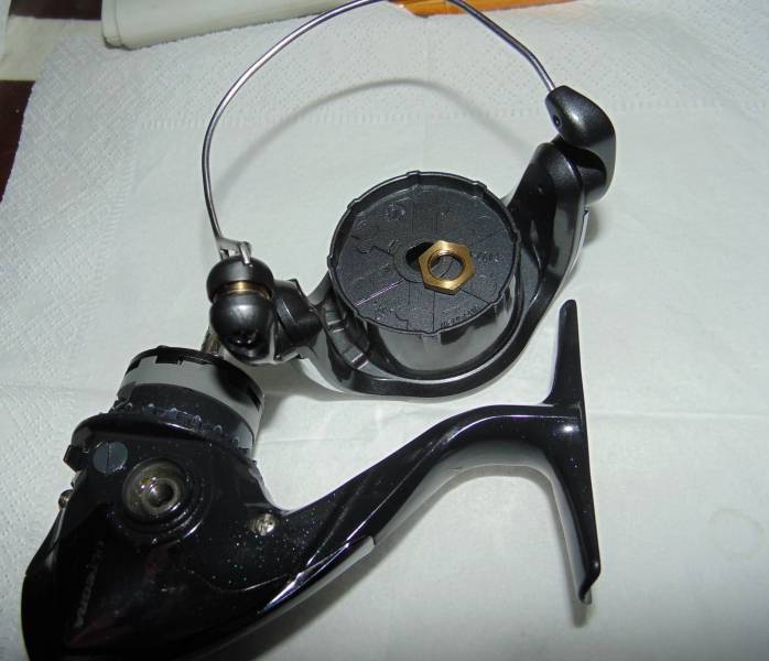 С дужкой немного налажали,вернее не с самой дужкой,а с тем как она крепится к узлу ролика лесоукладывателя.Получается так:дужка в месте соединения с узлом ролика похожа на вилку,которая упирается в ось,сама же ось садится в пластиковую втулку дальше идёт стандартный узел(дистанционная шайба ролик,втулка с підшипником еще одна дистанционная шайба металлическая шайба и резиновый пыльник. Подшипник неплохого качества, почти нечем не уступает более дорогим моделям. Учитывая конструкцию, надо следить за тем, чтобы винт держащий узел ролика был всегда затянут.