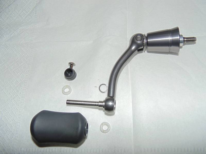 Ручка сделана из дешёвого алюминия. Кноб из резины,ничем не отличается от тех, что стоят на более дорогих моделях. Кноб вращается на втулках,которые сразу надо менять на подшипники,иначе сносится ось и разобьётся кноб.