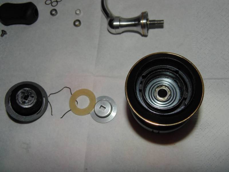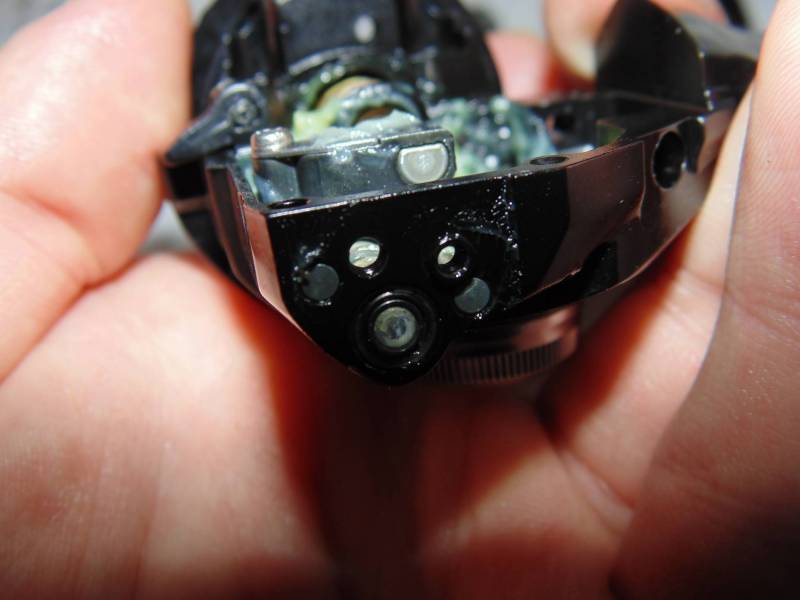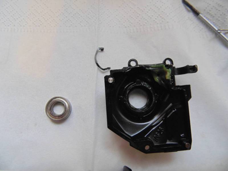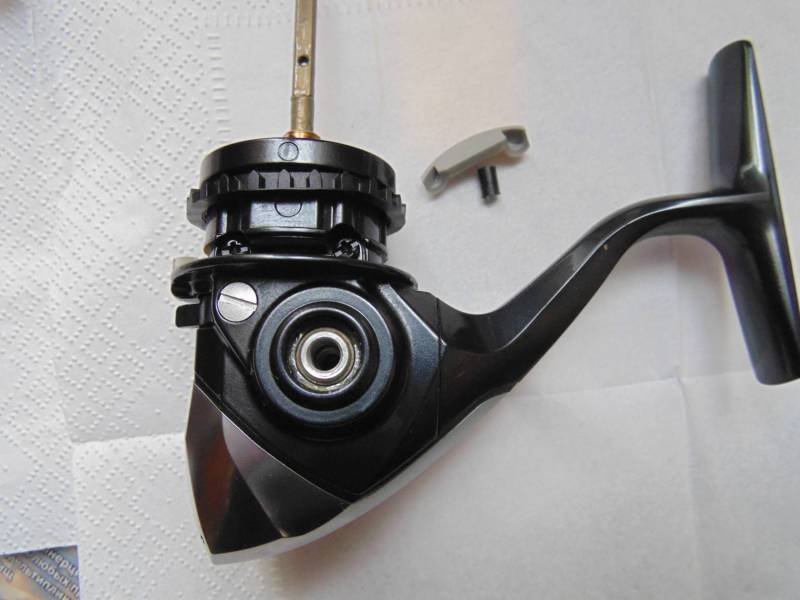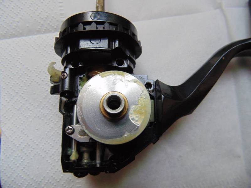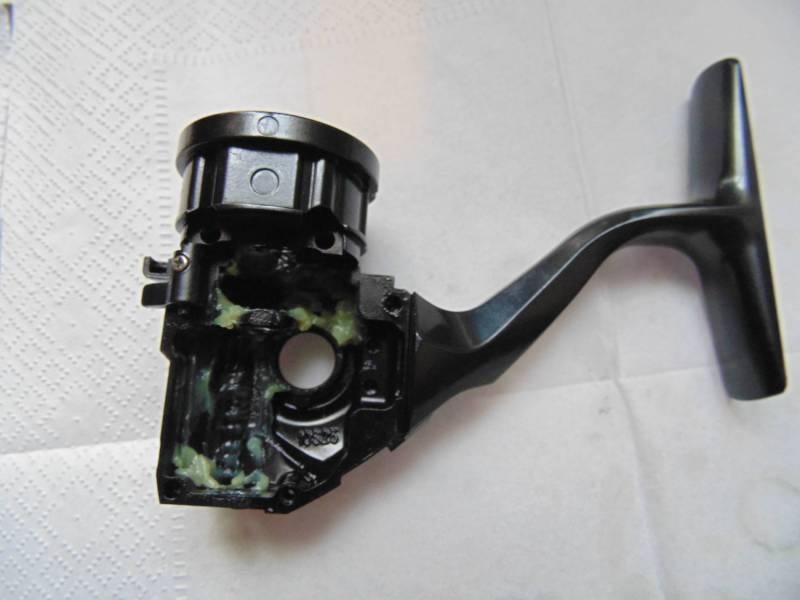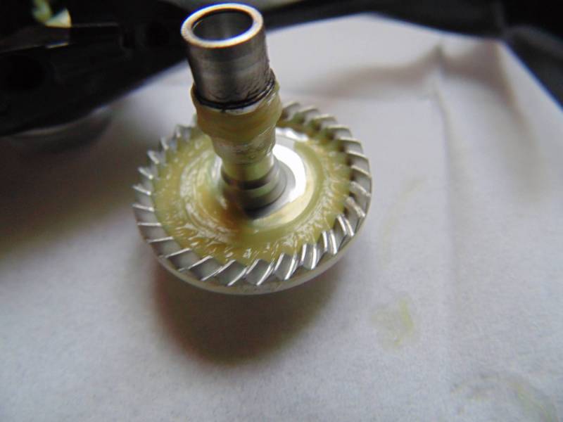 Вот наконец добрались до сердца катушки. Смазки очень много, а вот толку мало. На шестерне то она не держится.