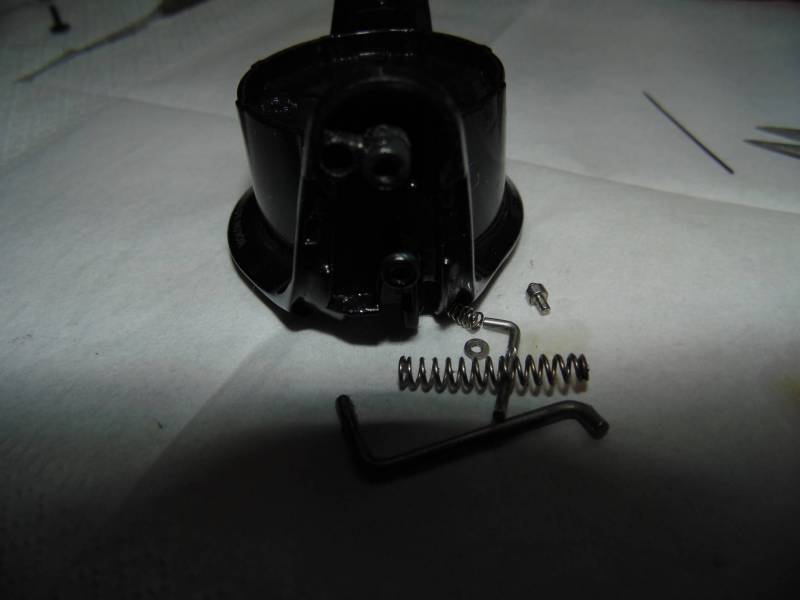 Под крышкой видим пружинуи толкатель переключателя обратного хода. Они любят улетать. Кстати на 06 твине такие же стоят.