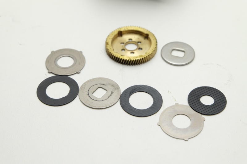 Далее снимаем звезду фрикциона с трещёткой, стандартный набор шайб и подшипник из нержавейки 8*12*2,5. Звезда довольно удобная, сделана из алюминиевого сплава. Трещетка звучит как надо.