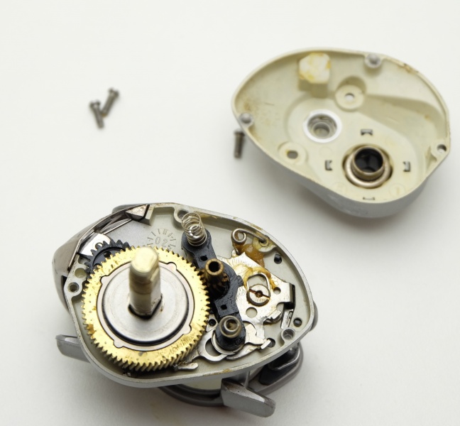 А вот и механика показалась. Здесь ещё огромное количество родной смазки, но срок службы уже истёк.