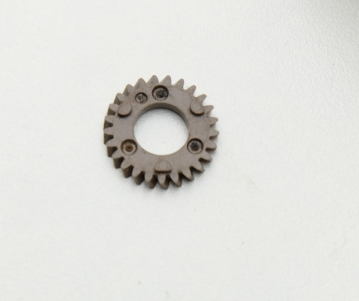 А это зубчатое колесо с покрытием, благодаря которому при повороте ручки закрывается клавиша.