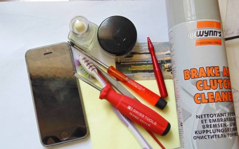 пинцет, салфетки смазка и спрей!Если катушка Shimano ,то подойдет DG-01, ежеле Daiwa, то можна использовать фирменную Daiwa для фрикциона. Не