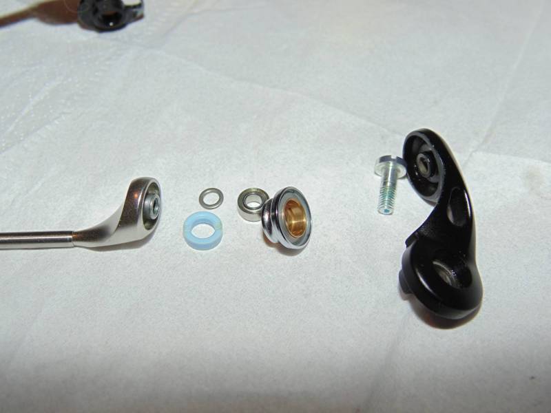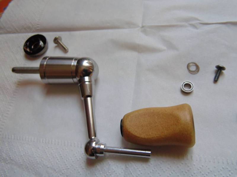Поехали! Ручка точёная, из качественного алюминиевого сплава.С обратной стороны фиксируется винтиком.Сидит прекрасно никаких люфтов даже спустя годы.Лучше её не снимать лишний раз,конечно заимает многовато места, но что сделаешь.Кноб сделан из пресованой пробки,покрыт слоем пластика,довольно качественный и долговечный.Вращается на одном подшипнике 4*7*2,5