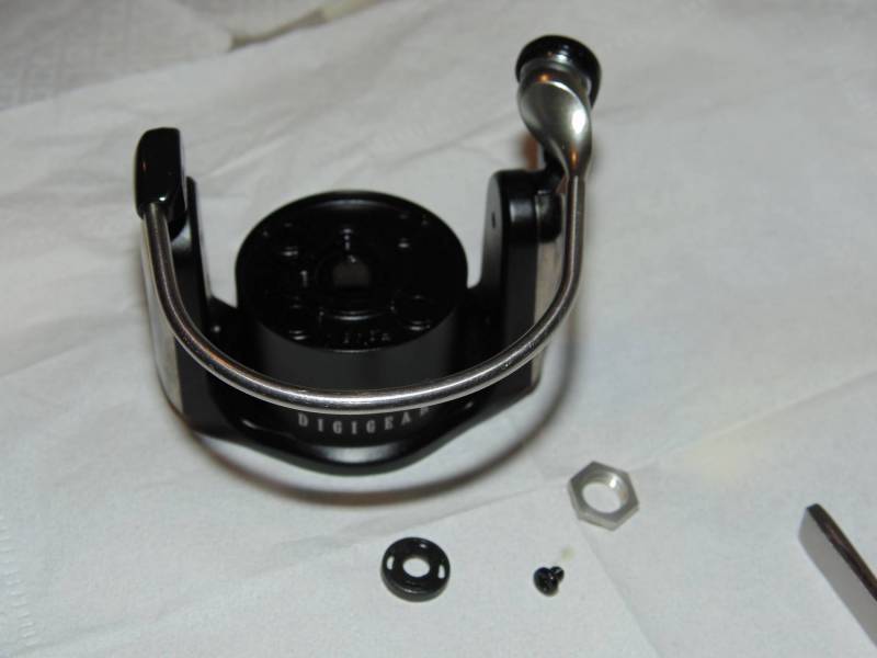 Сняв магниевую крышку достаём ведущую.Сделана из очень качественного алюминиевого сплава и имеет защитное покрытие,долговечная.Но довольно маленькая ,примерно как на 1000 Shimano .Слева опирается на большой подшипник 7*14*5 ,справа же на 7*11*3.